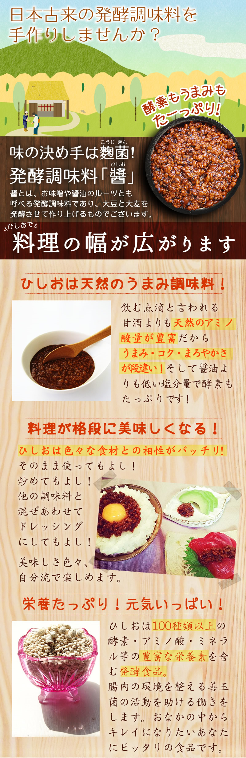 TOPヨーグルト・甘酒発酵キット 『ひしおの糀』【メール便対応1通1個】 通常価格: ¥1,398(税込) 価格: ¥1,398 (税込) [ポイント還元 13ポイント〜] 販売期間: 数量: 個 在庫: ○在庫あり 在庫 ○在庫あり 返品についての詳細はこちら レビューはありません ひしおの糀