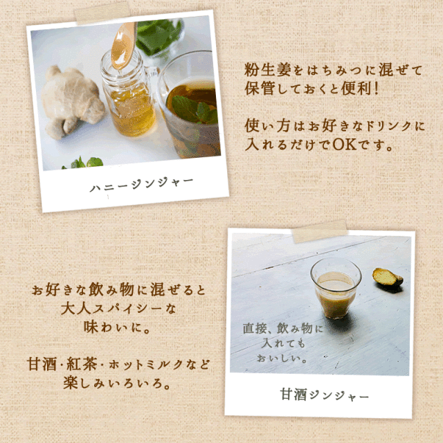 しょうが紅茶ならぬしょうが緑茶で頂いています。しょうがの香りが強くて美味しいです。みかんの皮(陳皮)と一緒に毎日頂いて、風邪知らずです。ありがとうございます。