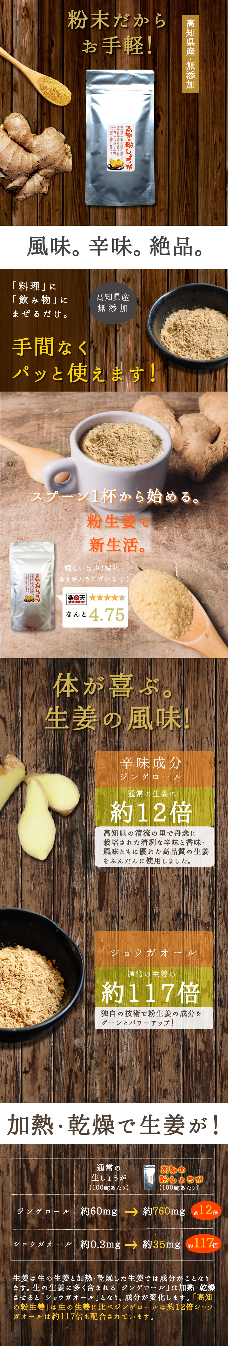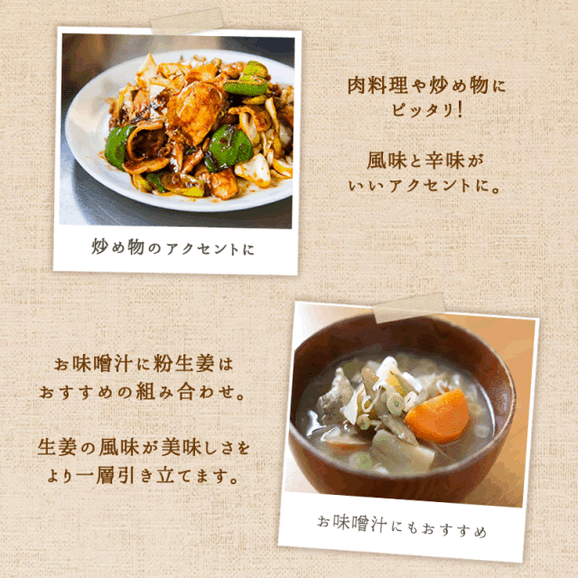 前まで楽天で1番人気の粉末生姜を使っていて、今回試しにこちらを購入。こちらの方が風味も味も強く、汁物や煮魚・唐揚げや生姜焼きなど様々使えそうです。少量でそこそこ強い風味が出るので最初は調整が必要かもしれません。ですがコスパと味が良く満足しています。