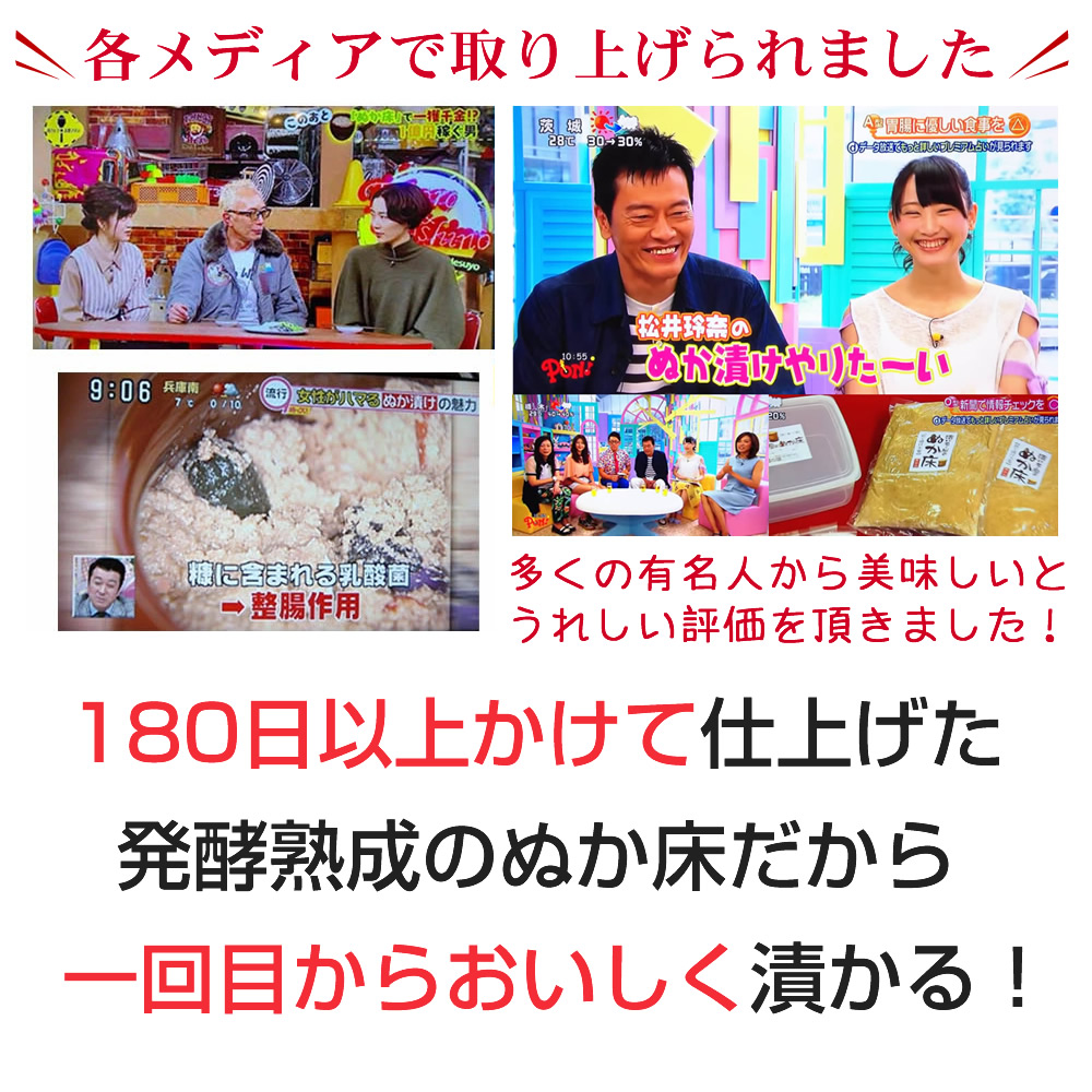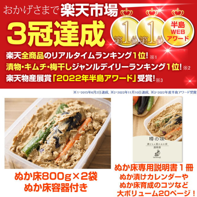 TOP漬けもん屋のぬか床セット 『カンタンぬか床セット』anan掲載商品! 通常価格: ¥1,980(税込) 価格: ¥1,980 (税込) [ポイント還元 19ポイント〜] 販売期間: メーカー: 樽の味 JANコード: 4526248557343 数量: 個 在庫: ○在庫あり 在庫 ○在庫あり 返品についての詳細はこちら 4.5 (4件) 180日以上発酵熟成のぬか床 これであなたも漬物名人です! 商品仕様 JANコード: 4526248557343 メーカー: 樽の味