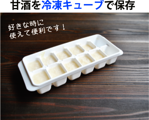 多く作った甘酒は冷凍で保管しておきましょう。冷凍すれば数ヶ月持ちますので使いたい時に使用することができます。冷凍キューブにしてしまえば個別に使えるのでとても便利です^_^